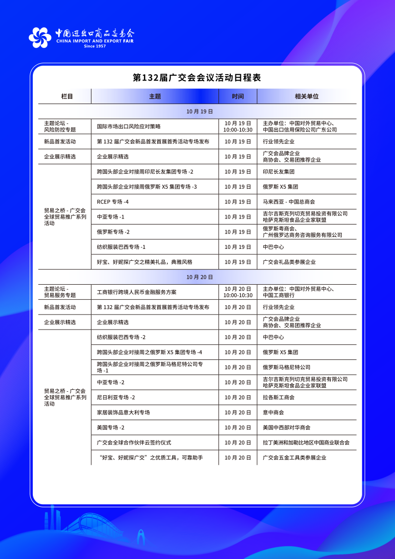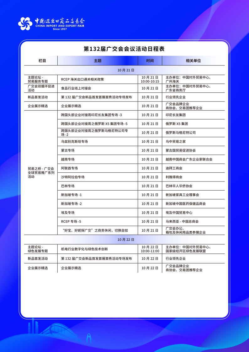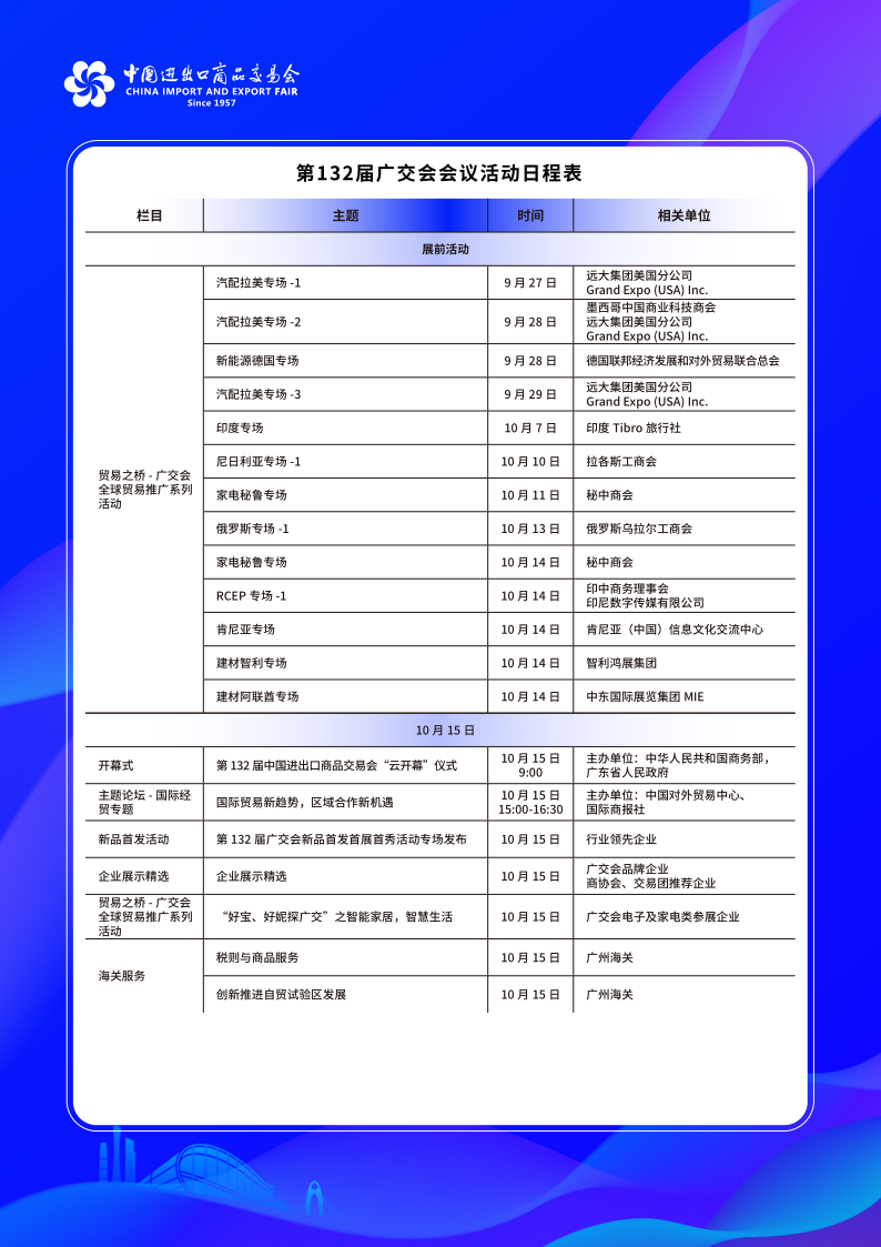 Calendario de actividades del 132o período de sesiones de la Feria de Cantón