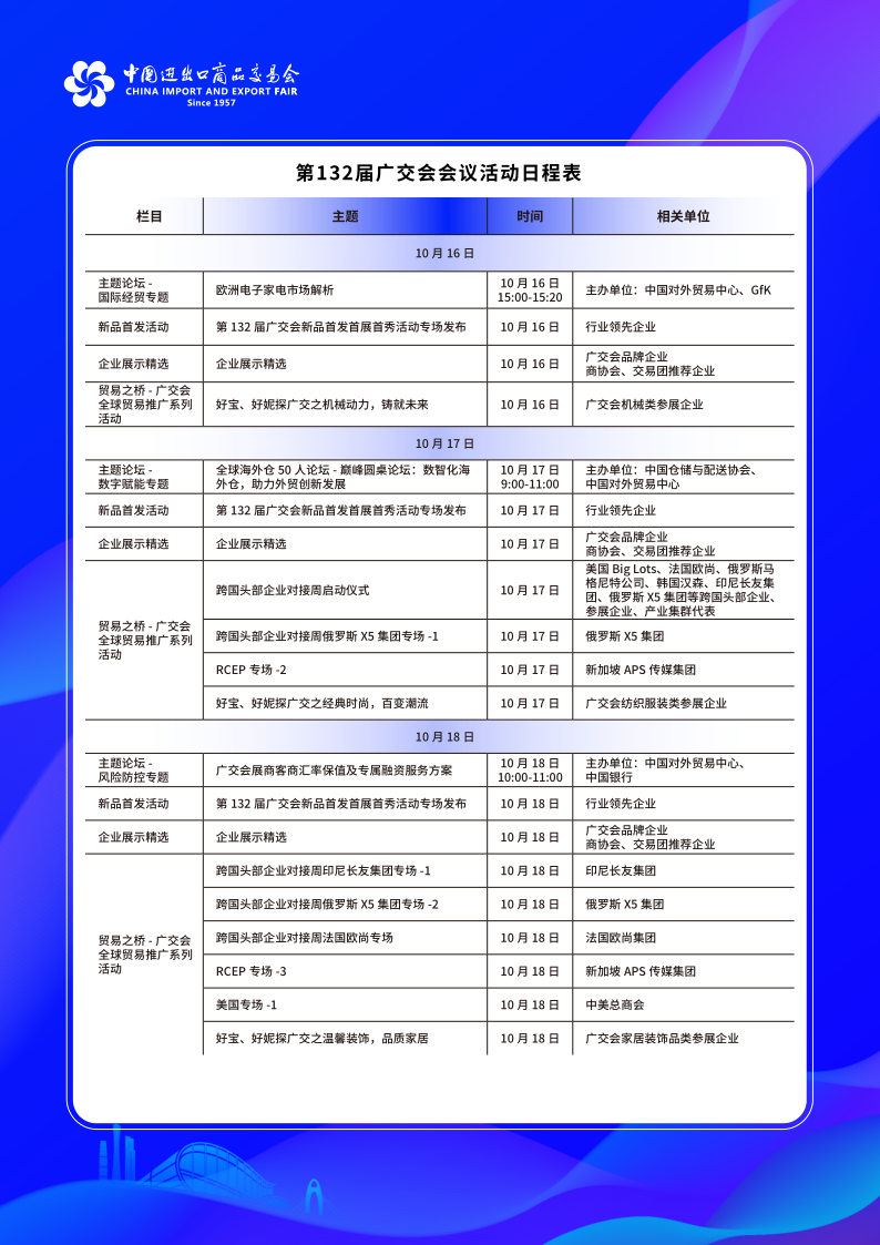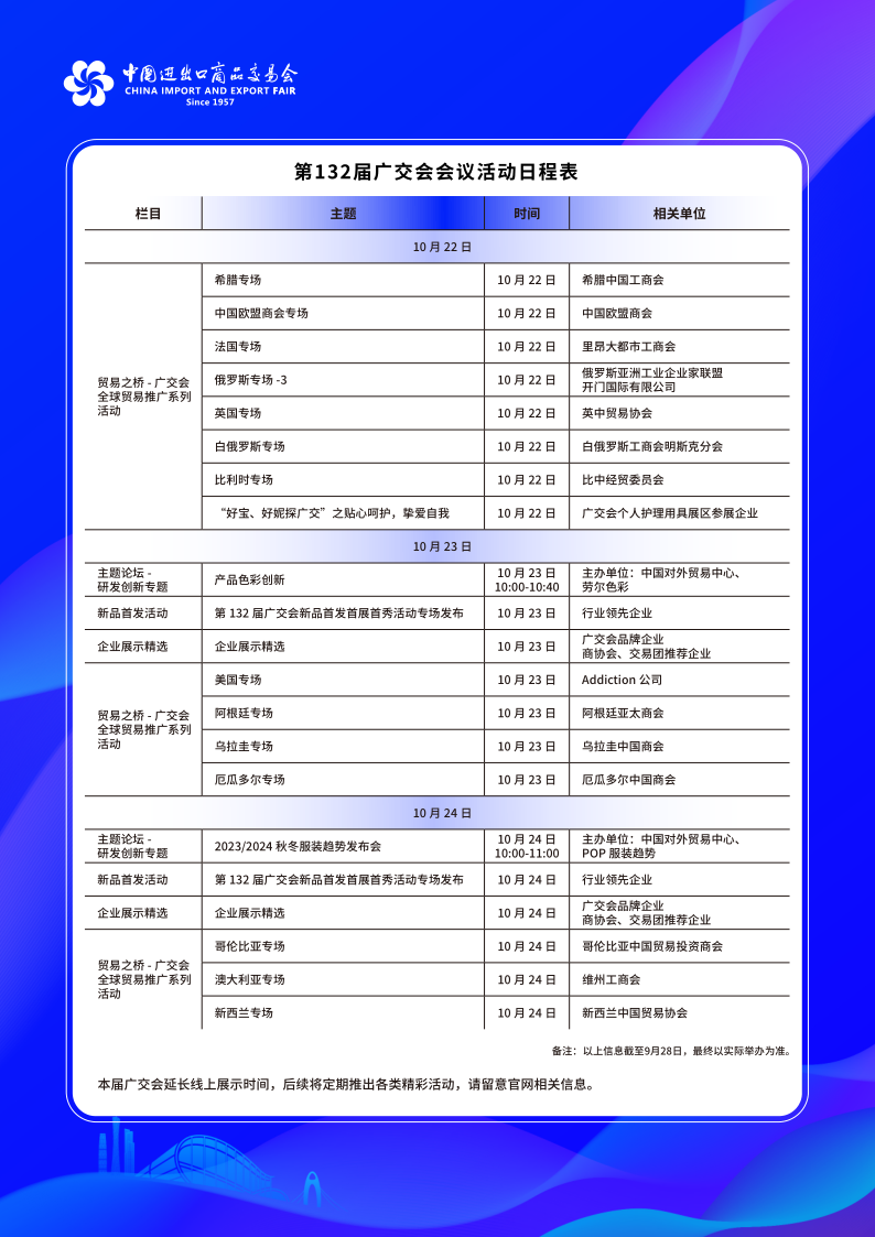 第132屆廣交會會議活動日程表